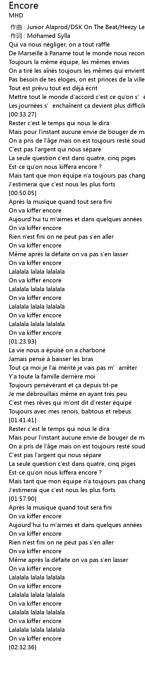 | [00:43.93] | Est-ce qu'on nous kiffera encore ? |