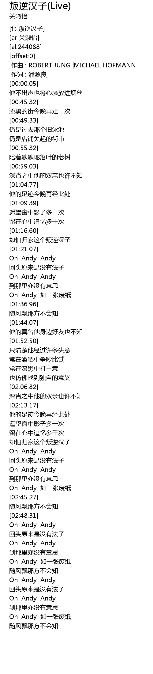 | [03:48.37] | Oh Andy 如一张废纸 |