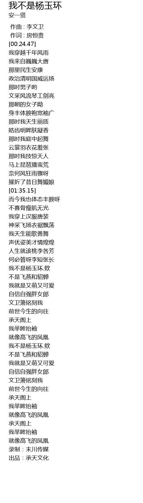 | [03:06.96] | wǒ bú shì yáng yù huán. āi |