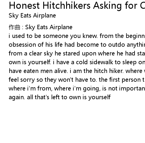 | Song | Honest Hitchhikers Asking for Cash Handouts |