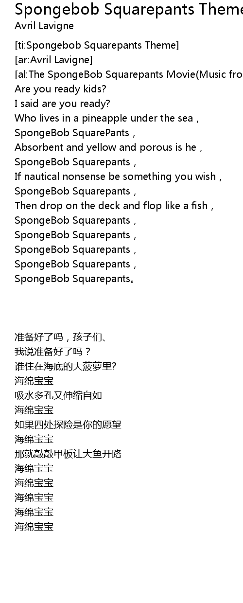 | [al:The SpongeBob Squarepants Movie(Music from the Movie and More)] | |
