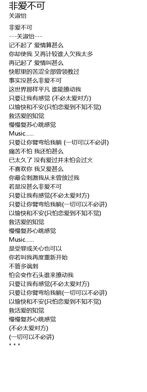 | [01:06.99] | 只要让我有感觉 (不必太爱对方) |