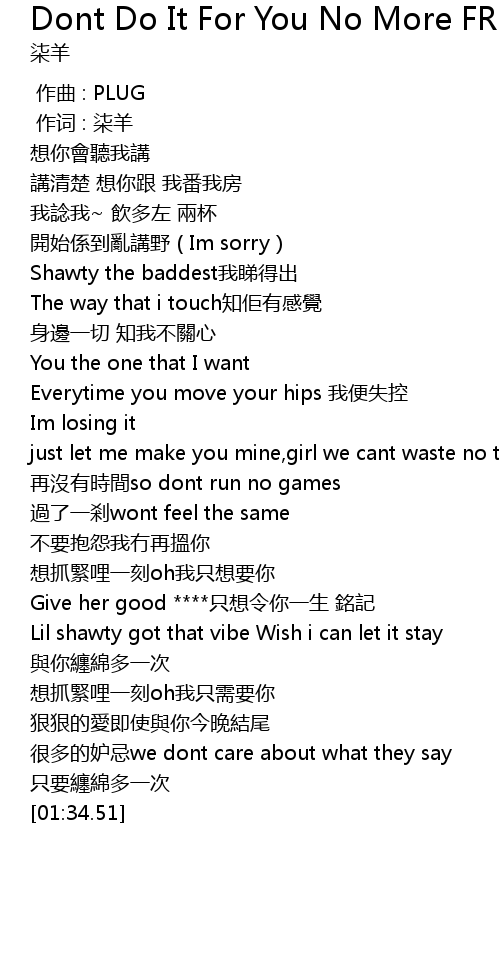 | [00:53.63] | zài méi yǒu shí jiān so dont run no games |