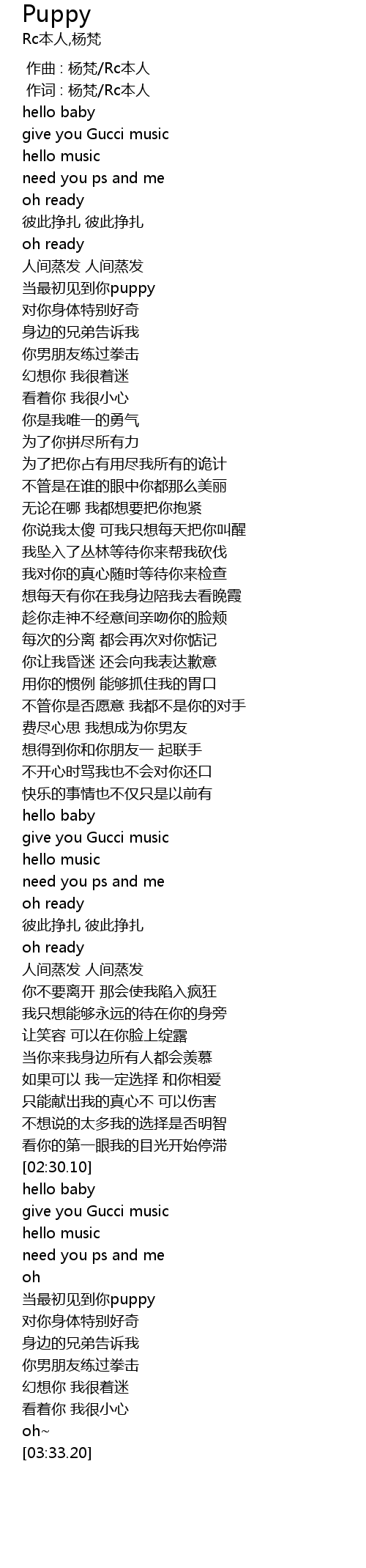 | [03:10.27] | dang zui chu jian dao ni puppy |