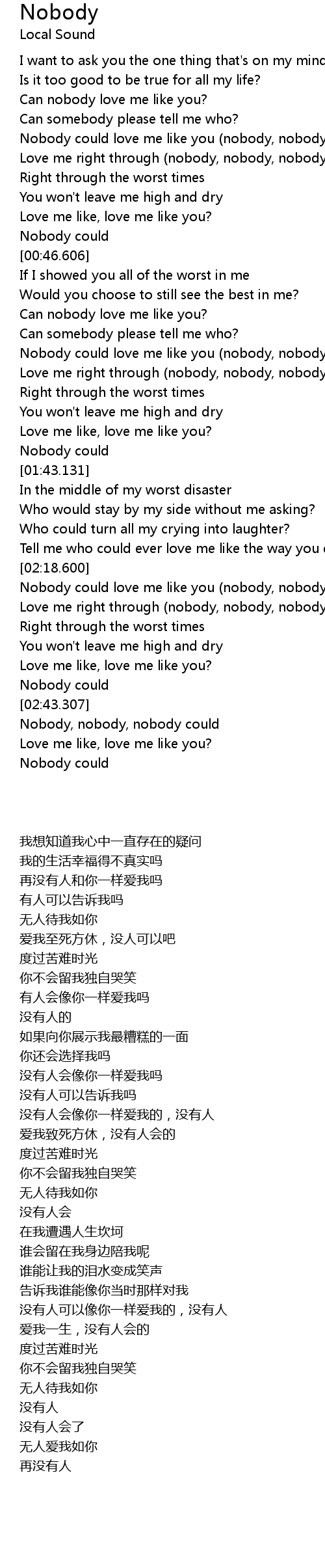 Nobody could love me like you (nobody, nobody, nobody could) |