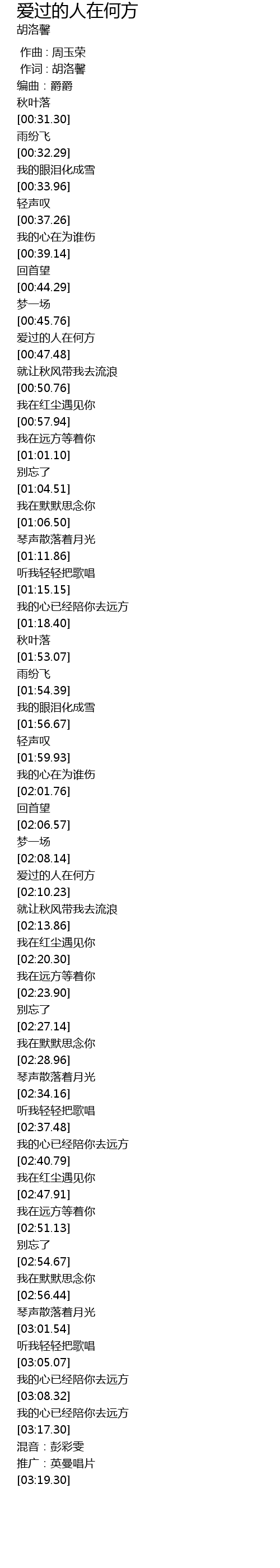 | [02:09.27] | ài guò de rén zài hé fāng |