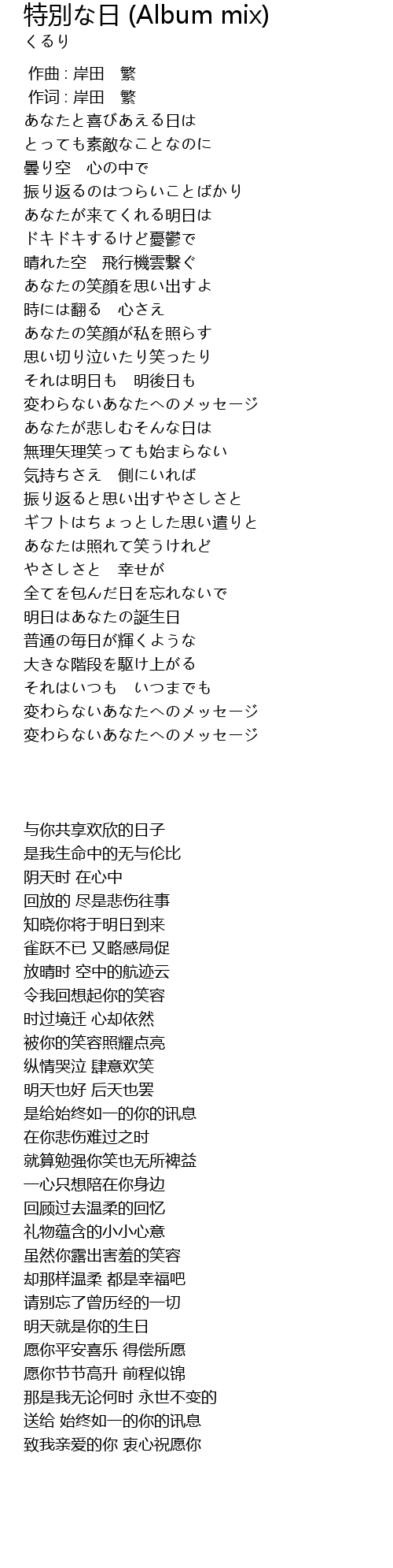 | [02:13.54] | 変わらないあなたへのメッセージ |
