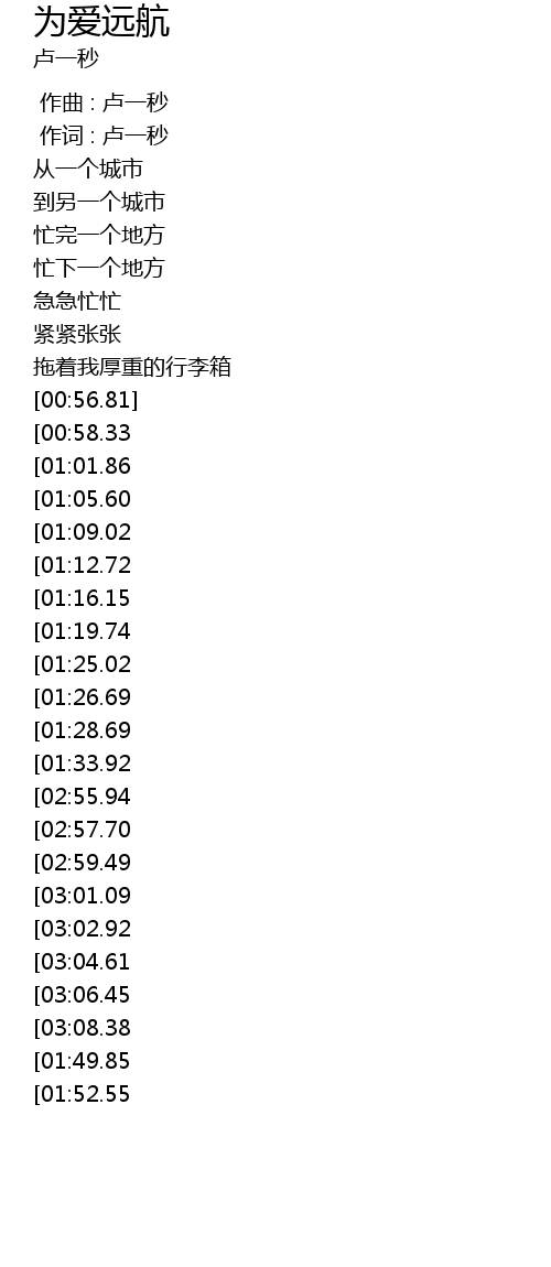 | [03:18.88][03:02.92][01:41.80] | 为爱远航 |