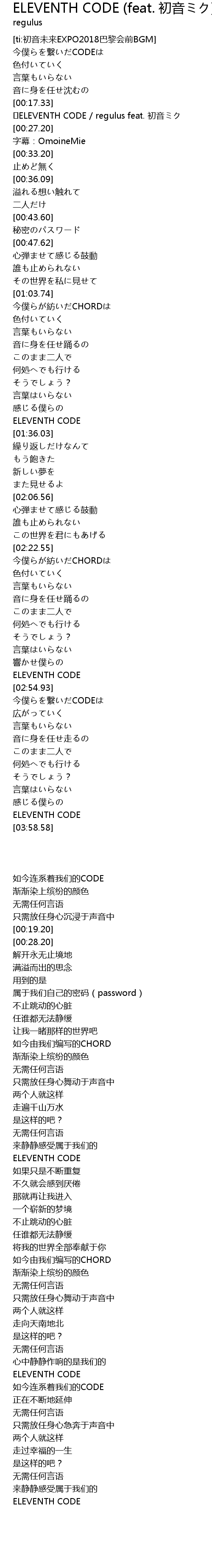 | [00:19.20] | ♪ELEVENTH CODE / regulus feat. 初音ミク |
