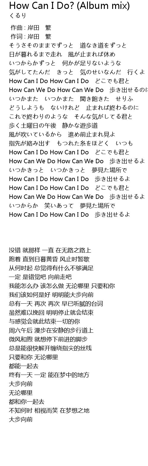 | [00:40.83] | How Can I Do How Can I Do jūn |