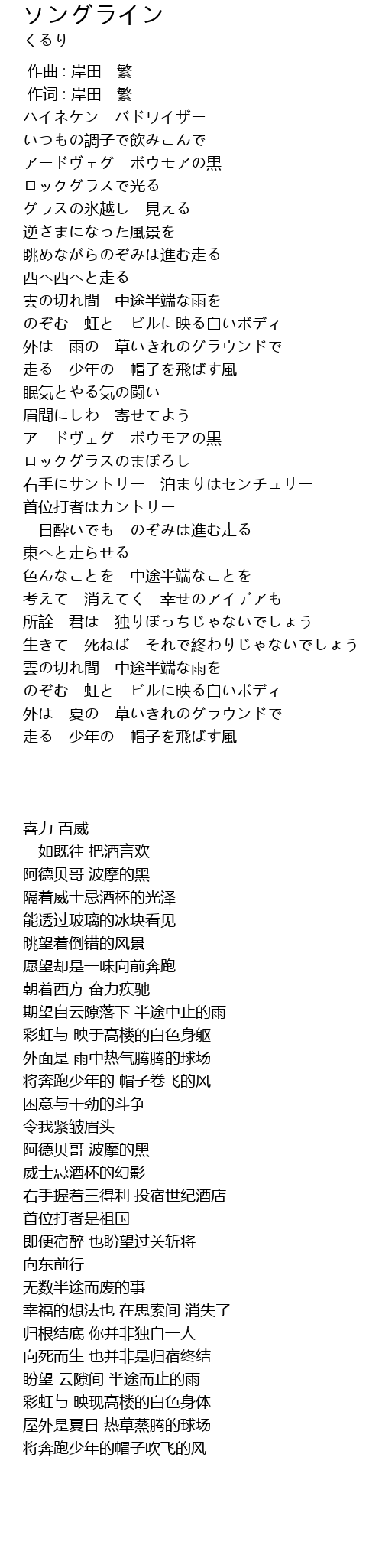 | [00:01.000] | 作词 : 岸田 繁 |