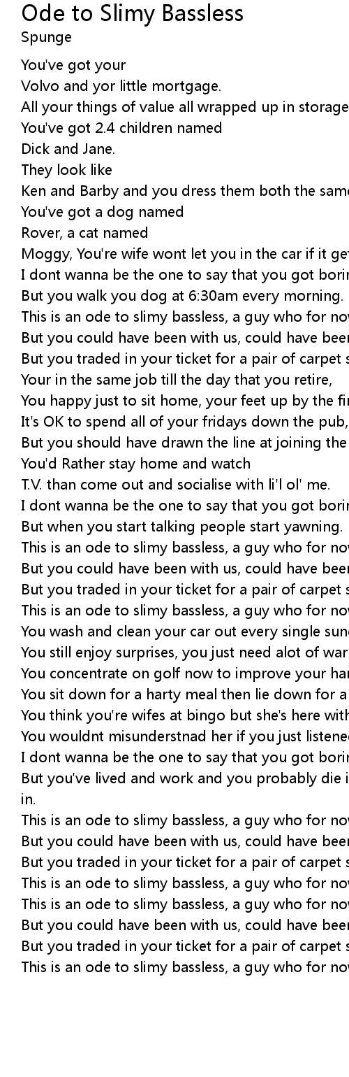 This is an ode to slimy bassless, a guy who for now who should remain nameless. |
