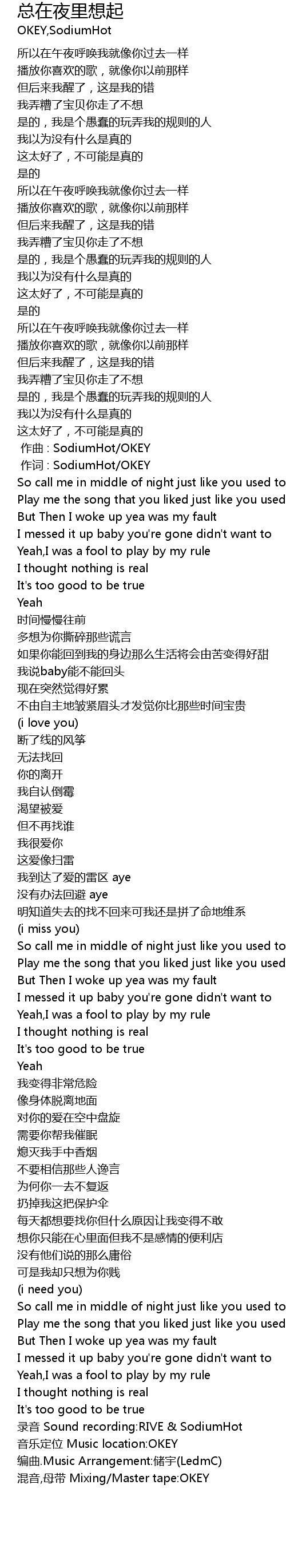 | [00:00.028] | 作词 : SodiumHot/OKEY |