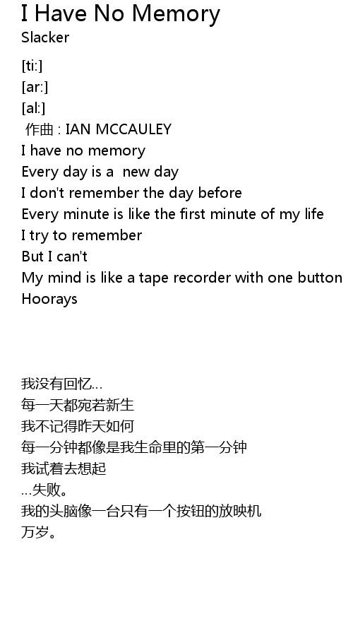 | [00:32.85] | I have no memory |