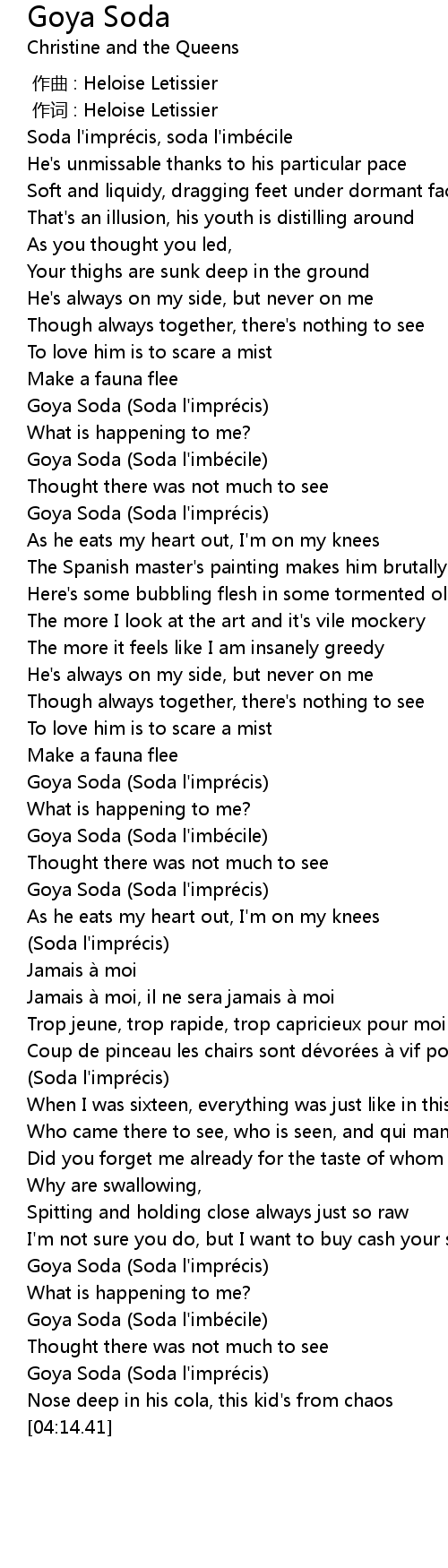 | [01:20.33] | Goya Soda Soda l' impré cis |