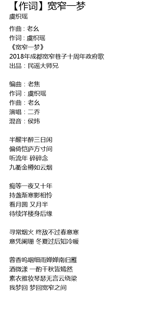 | 2018年成都宽窄巷子十周年政府歌 | |