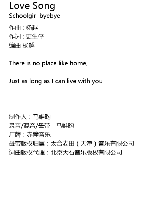 | 词曲版权代理:北京大石音乐版权有限公司 |