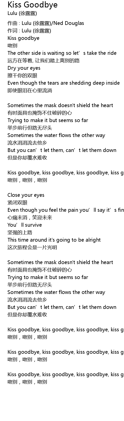 | Kiss goodbye, kiss goodbye, kiss goodbye, kiss goodbye | |