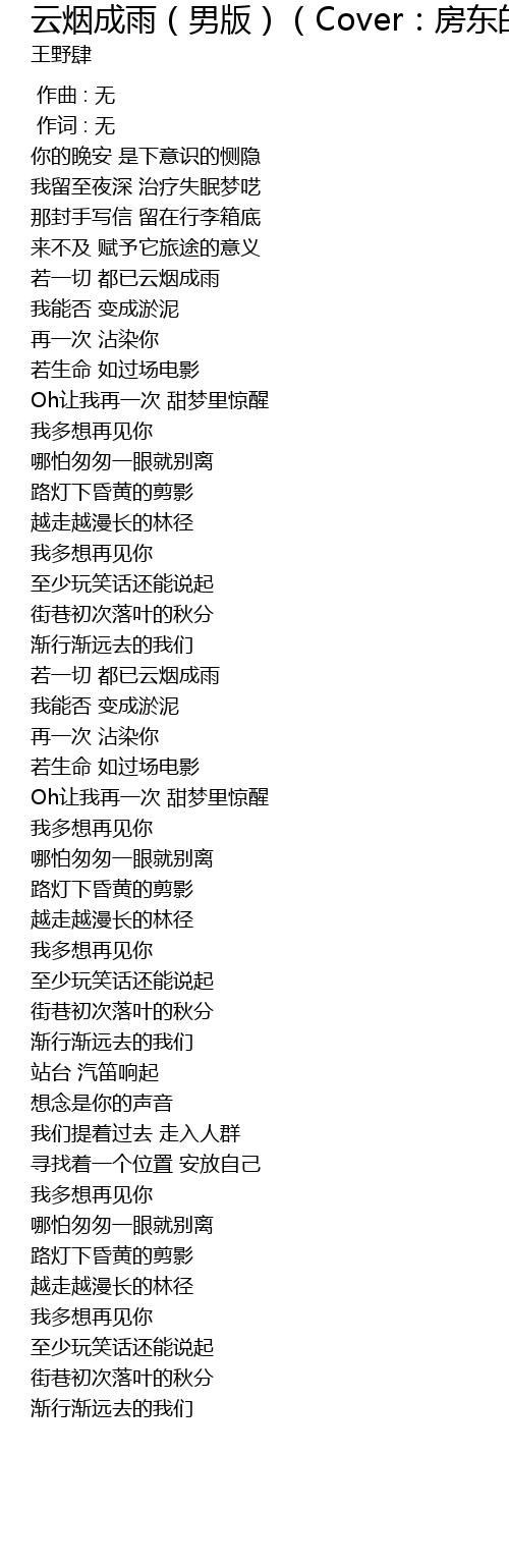 | [00:43.50] | 若一切 都已云烟成雨 |