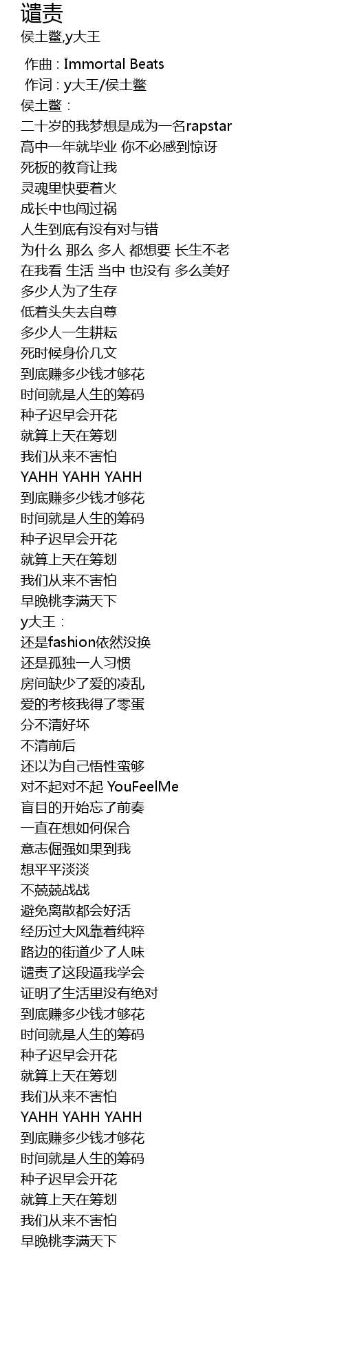 | [00:01.000] | 作词 : y大王/侯土鳖 |