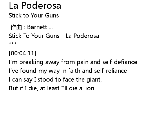 | [00:00.40] | Stick To Your Guns La Poderosa |
