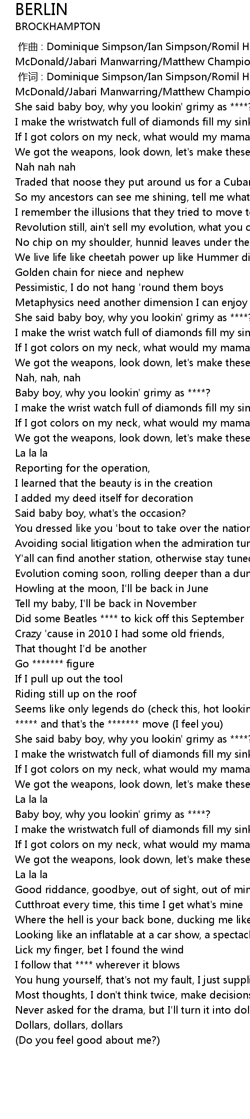 | [00:55.13] | Baby boy, why you lookin' grimy as ****? |