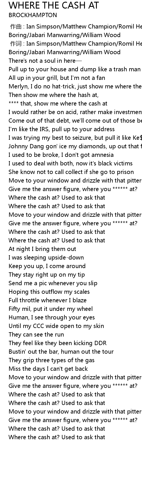 | [00:44.09] | Give me the answer figure, where you ****** at? |