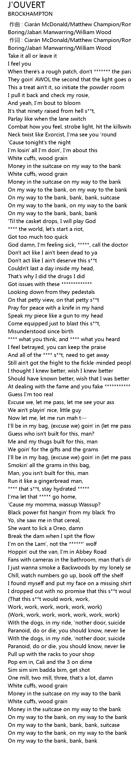 | [00:45.18] | On my way to the bank, bank, bank, suitcase |