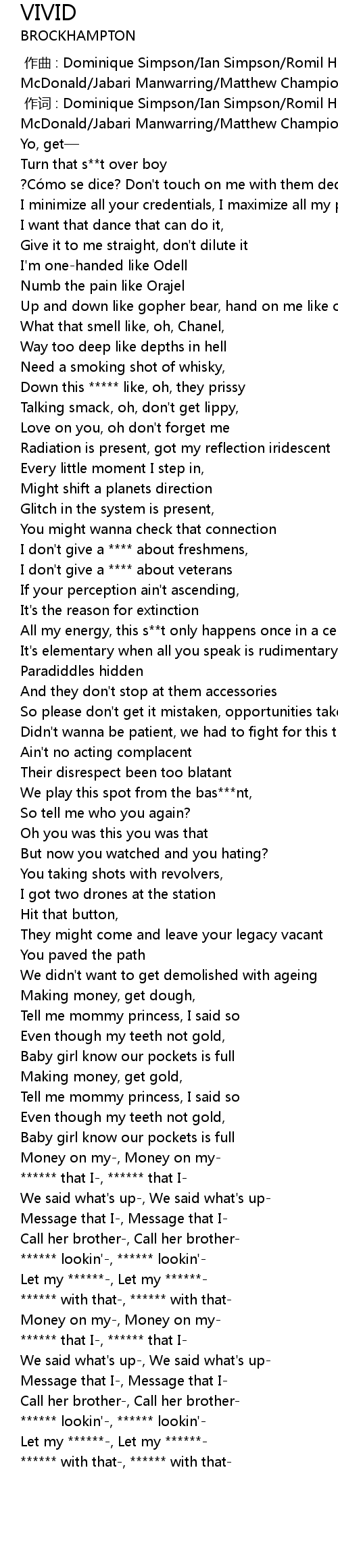 | [00:01.000] | 作词 : Dominique Simpson/Ian Simpson/Romil Hemnani/Ciarán McDonald/Jabari Manwarring/Matthew Champion/Isaiah Merriweather |