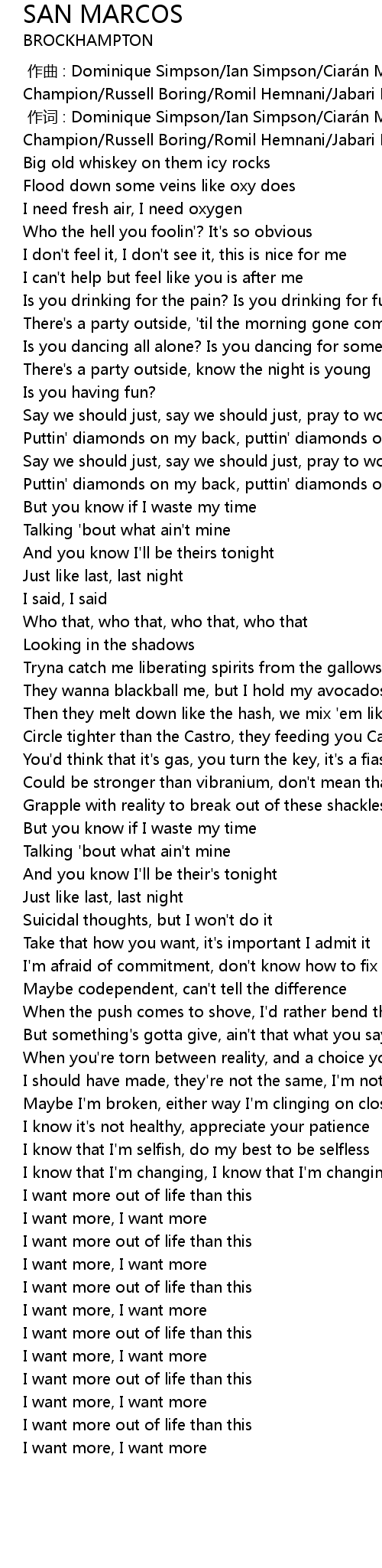 | [00:00.004] | 作词 : Dominique Simpson/Ian Simpson/Ciarán McDonald/Matthew Champion/Russell Boring/Romil Hemnani/Jabari Manwarring/Isaiah Merriweather |