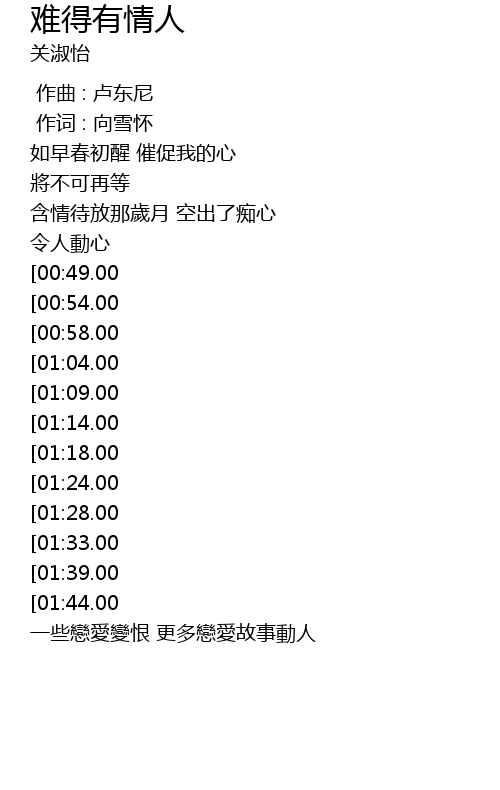| [02:58.00][01:39.00] | yī xiē liàn ài biàn hèn gèng duō liàn ài gù shì dòng rén |