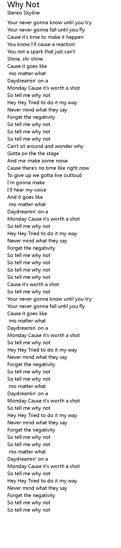 So tell me why not |
