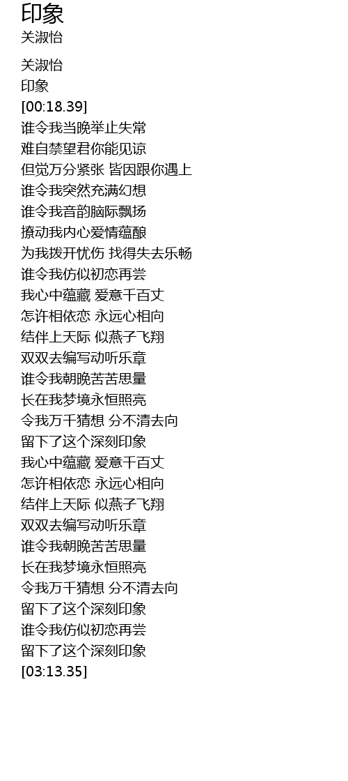 | [03:04.18] | liú xià le zhè gè shēn kè yìn xiàng |