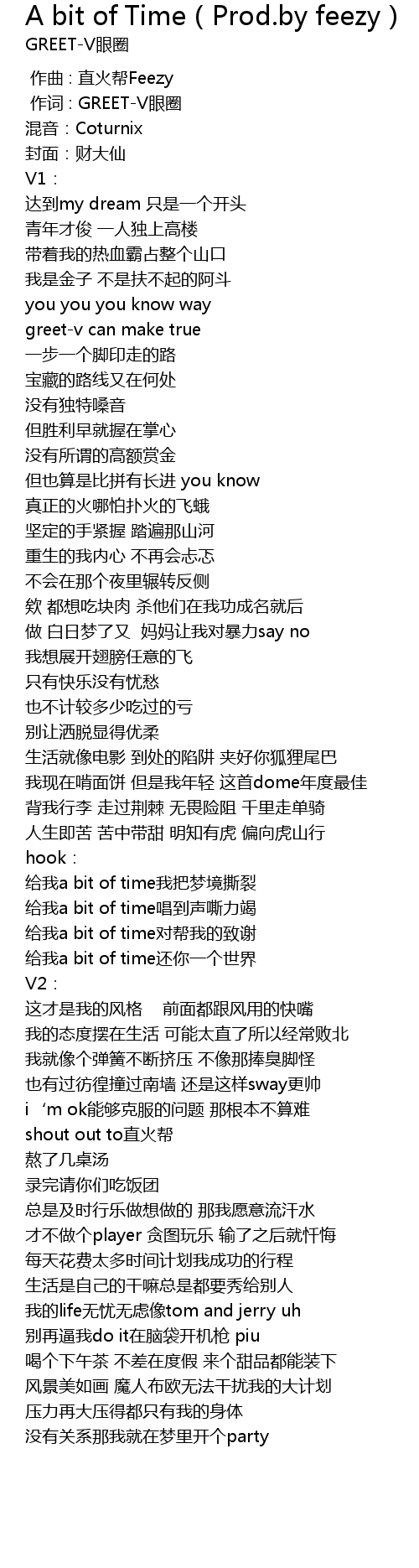 | [00:01.000] | 作词 : GREET-V眼圈 |