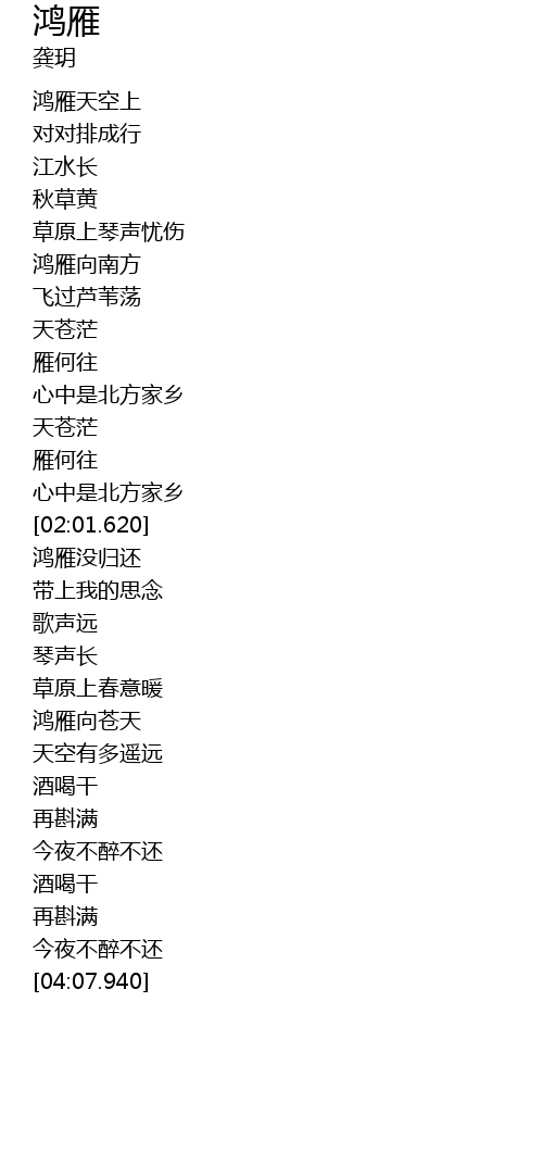 | [00:36.700] | 鸿雁天空上 |