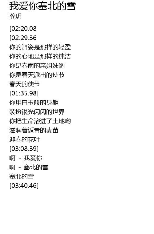 | [00:49.16][02:20.08] | 我爱你 塞北的雪 |
