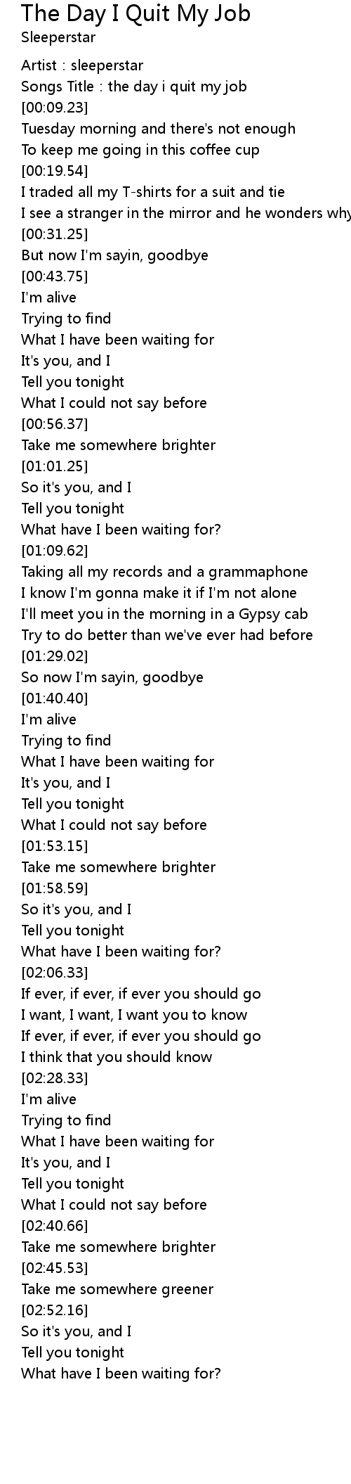 | [00:02.61] | Songs Title:the day i quit my job |