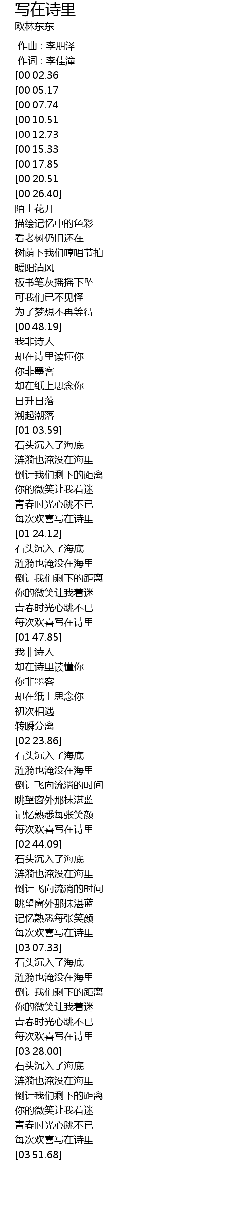 | [01:48.74][00:02.36] | xiě zài shī lǐ |