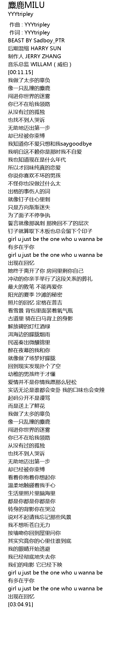 | [00:00.000] | zuò qǔ : YYYtripley |