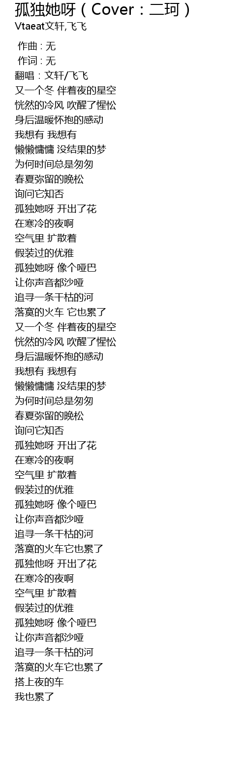 | [00:03.707] | 翻唱:文轩/飞飞 |