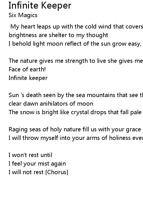 I behold light moon reflect of the sun grow easy, seducer comrade of the ages [Chorus:] |