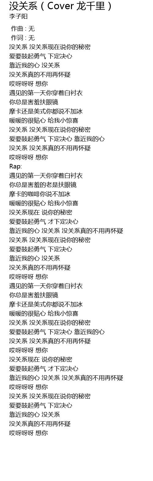 | [01:34.42] | mei guan xi mei guan xi xian zai shuo ni de mi mi |