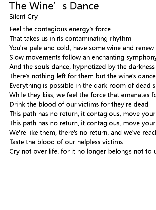 There's nothing left for them but the wine's dance |
