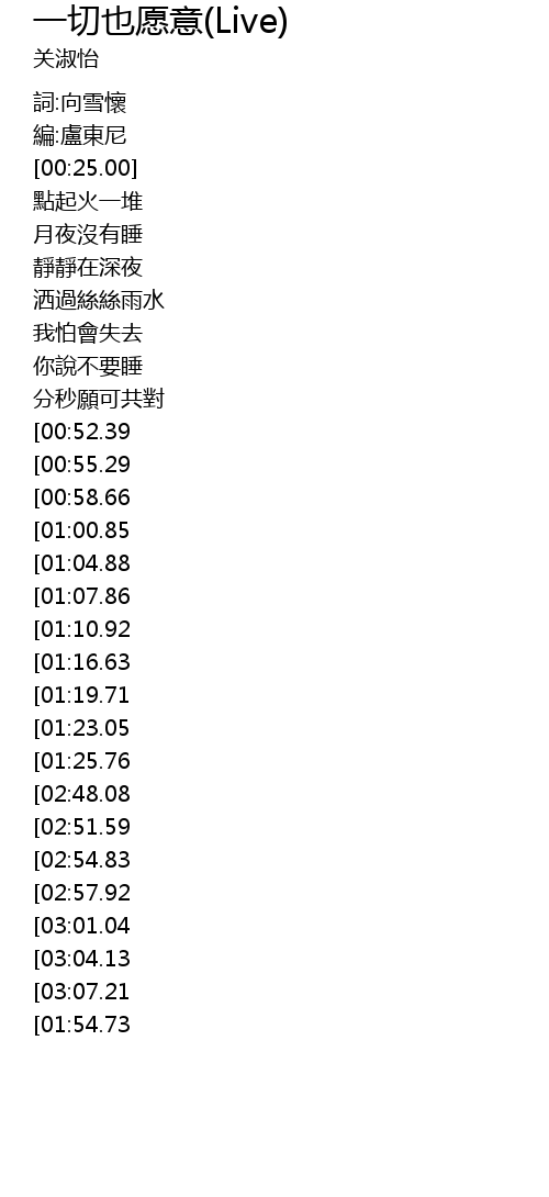 | [03:32.56][03:07.21][01:48.51] | 莫說為你犧牲死也願意 |