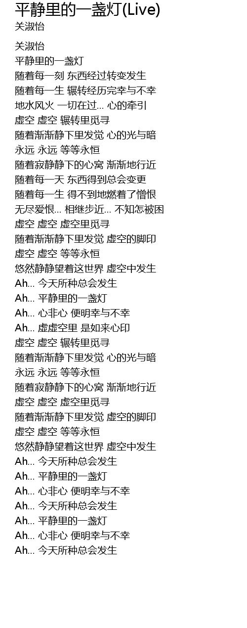 | [03:16.24] | Ah... 平静里的一盏灯 |