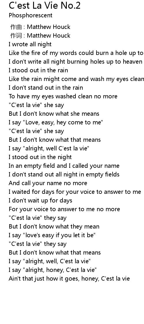 | [02:58.37] | I say " alright, well, C' est la vie" |