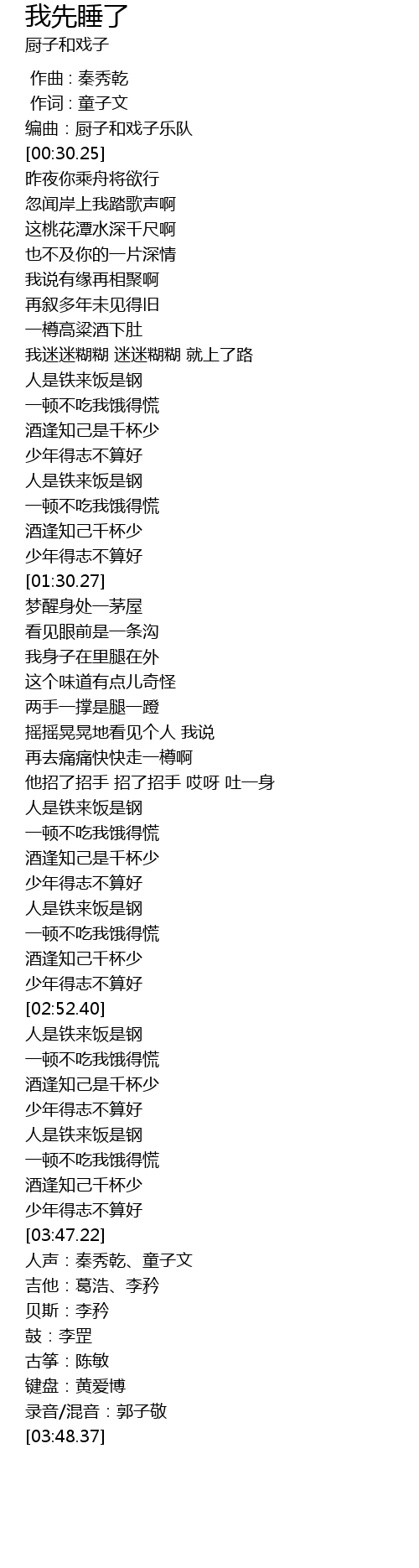 | [00:29.48] | 编曲:厨子和戏子乐队 |