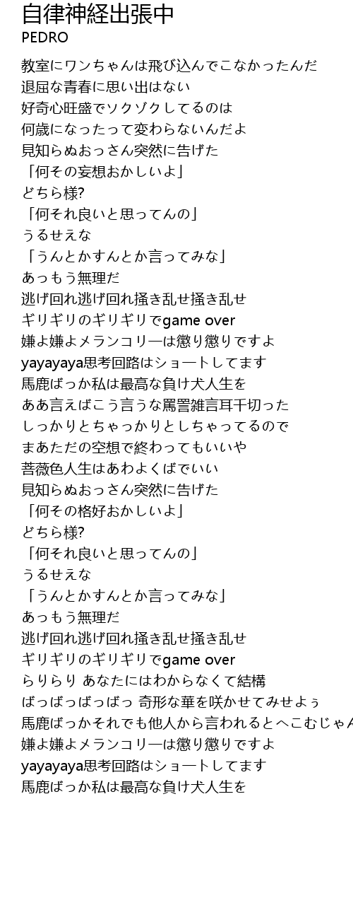 | [01:44.790] | ああ言えばこう言うな罵詈雑言耳千切った |