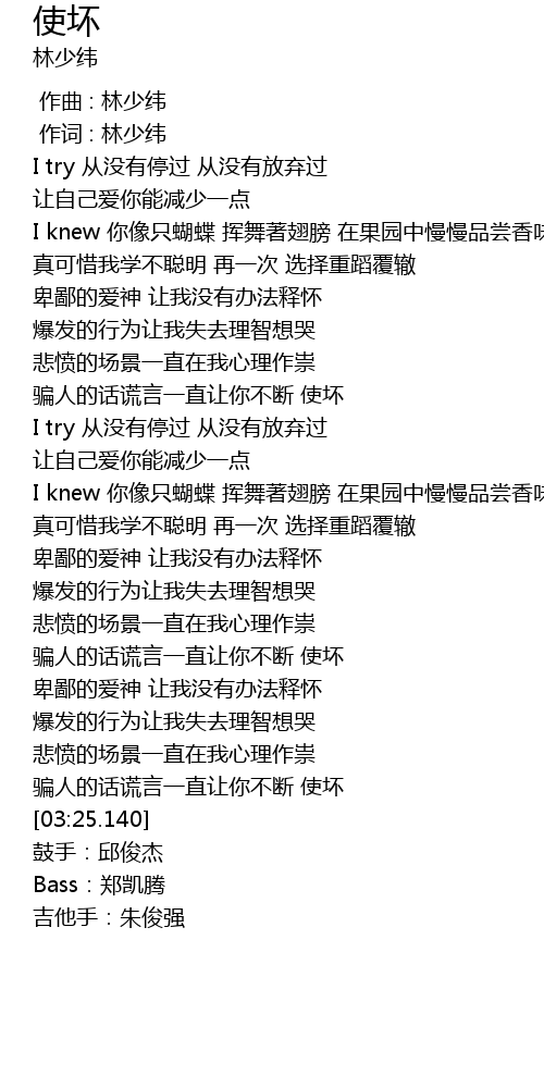| [03:16.690] | 骗人的话谎言一直让你不断 使坏 |