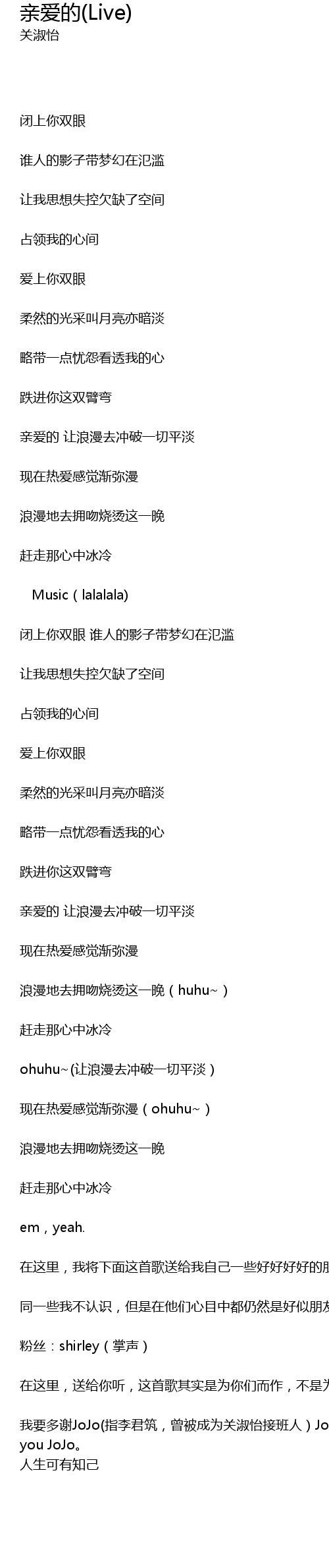 亲爱的(Live) qin ai de Live Lyrics